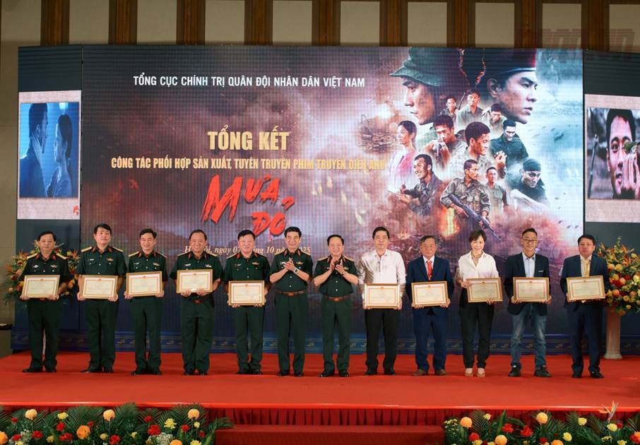 Đại tướng Nguyễn Tân Cương, Thượng tướng Nguyễn Trường Thắng trao bằng khen cho các cá nhân tham gia công tác sản xuất phim truyện điện ảnh “Mưa đỏ”