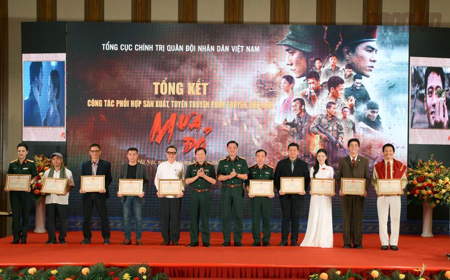 Trong khuôn khổ Hội nghị, Bộ trưởng Bộ Quốc phòng và Chủ nhiệm Tổng cục Chính trị QĐND Việt Nam đã trao Bằng khen cho các tập thể, cá nhân có thành tích xuất sắc trong quá trình sản xuất và tuyên truyền phim truyện điện ảnh “Mưa đỏ”, ghi nhận những đóng góp tiêu biểu vào thành công chung của tác phẩm.Cũng trong hội nghị, Chủ tịch UBND Tỉnh Quảng Trị tặng bằng khen cho Tập thể Điện ảnh Quân đội nhân dân vì đã có thành tích xuất sắc trong công tác phối hợp, tổ chức chiếu phim Mưa đỏ trên địa bàn tỉnh Quảng Trị.